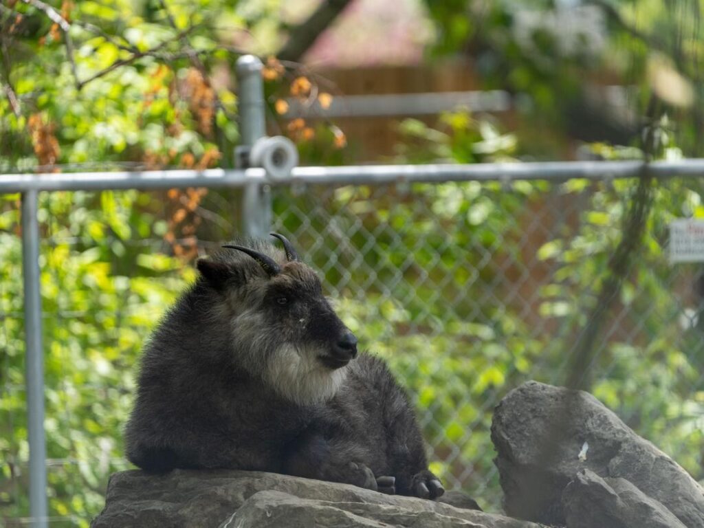 Japanese serows are masters of stealth, blending seamlessly in their densely vegetated environments, with dark fur in winter and a lighter coat in summer. If you look quickly at a Japanese serow, you may be tricked into thinking they have extra eyes – under their eyes they have large preorbital glands which secrete scent for marking territory. At four months of age, serow begin growing horns which grow throughout their whole lives.